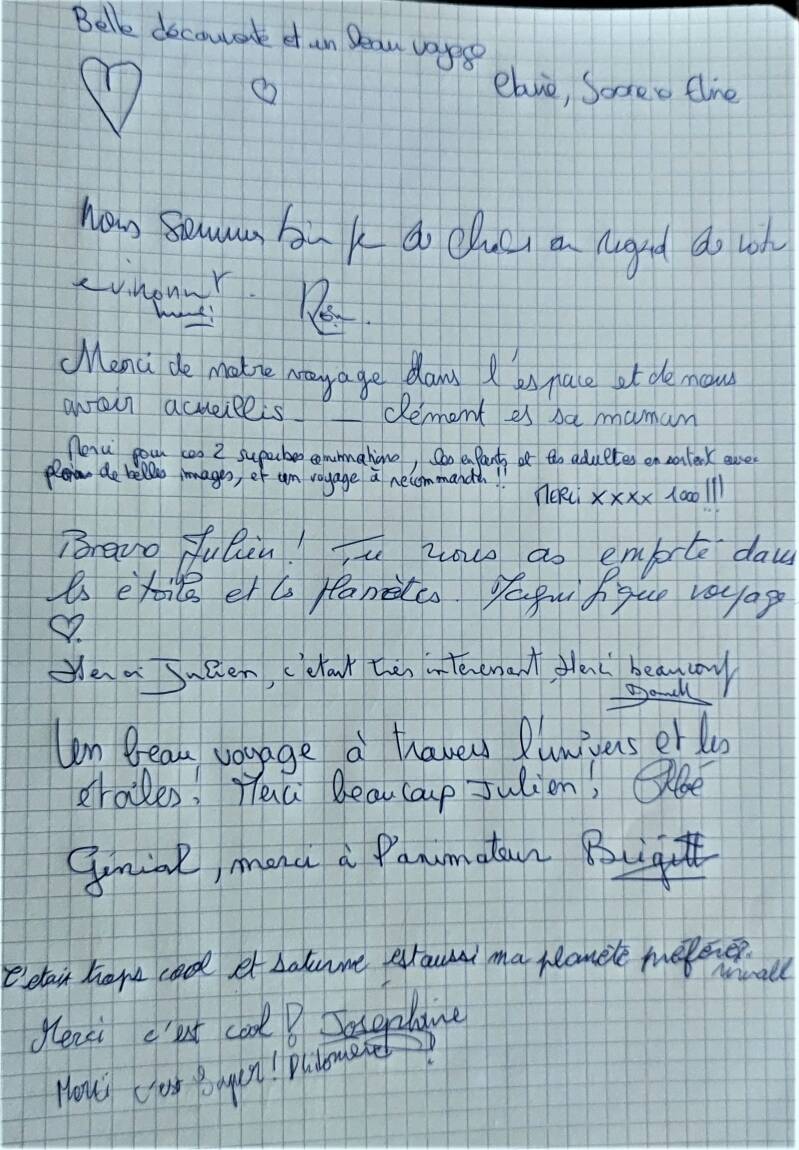 Quelques retours du public à la suite du planétarium